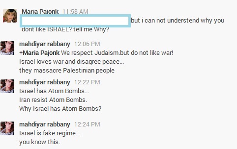 وقتی همسر یکی از فرماندهان ارتش اسرائیل بعد از کلی چرت وپرت، دلیل مخالفت من با این رژیم منحوس و جعلی را میپرسد:
