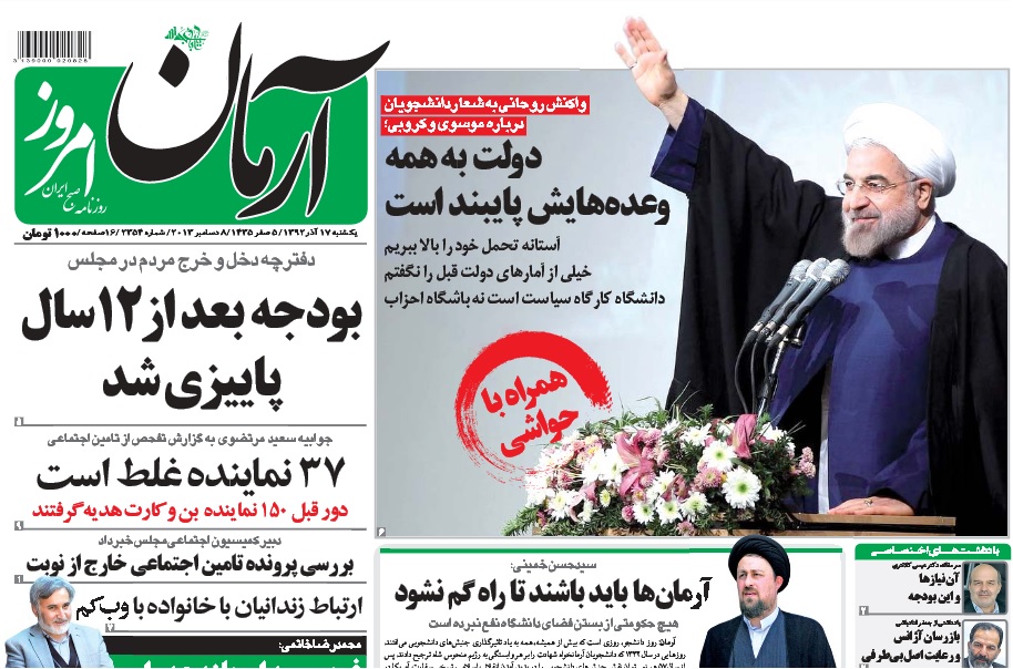 "ملت ایران یک ملت متحد است، امروز خبرنگاری سؤال کرد، گفت بعضیها گوشه و کنار، کارهایی انجام میدهند، اغتشاش است، شورش است، اعتراض است، واژههای تندی را به کار برد، من یک مثال زدم، یک نتیجهگیری کردم، برای شما عرض میکنم، گفتم شما اشتباه میکنید، ملت ایران یکپارچه است، در یک مسابقهی فوتبال، 50 هزار، 70 هزار تماشاچی میروند، آن کسی که تیمش باخته، وقتی میآید بیرون، عصبانی است و به هر دری میزند.